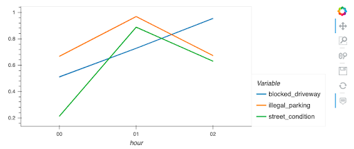 display(df_top5_frac.head()) The code below produces an error. %opts Overlay [width=800 height=600 legend_position='top_right'] Curve hv.Curve((df_top5_frac['Blocked Driveway'])